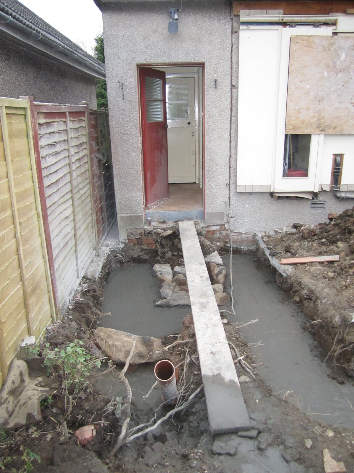 You'll see the new larch cladding where our ugly porch used to be. I am not totally convinced about it yet, but it is meant to weather to a silvery grey which will hopefully be a bit less garish. It is a vast improvement on the porch that was there and once we paint the front of the house it will all be much lovelier.